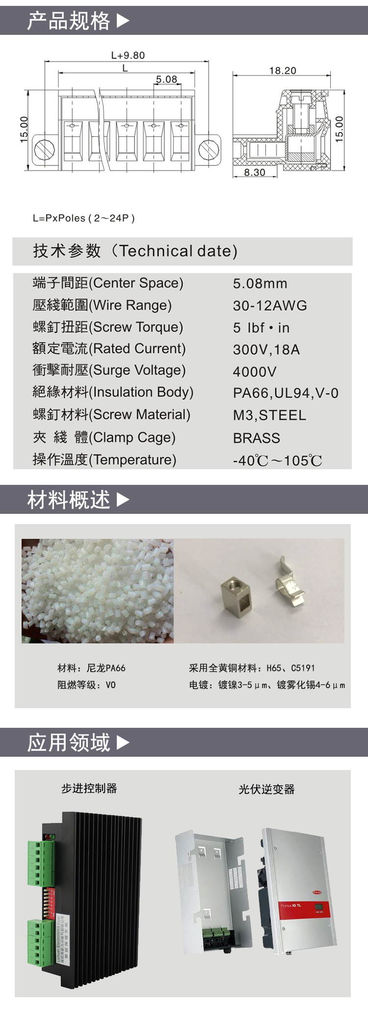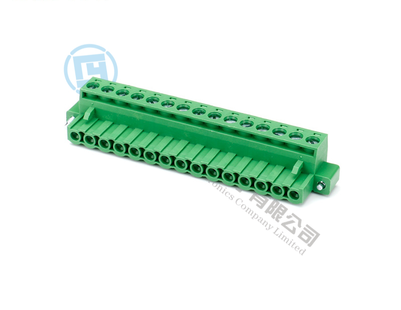 插拔式接線端子5.08間距90度彎頭法蘭 300V 15A 02P-24P