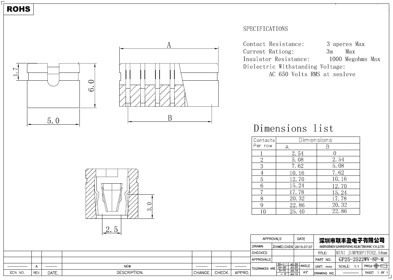 產品簡介 品名:短路帽 規格:插件/直式180° 間距:2.54mm PIN數:2PIN 備注:排母系列