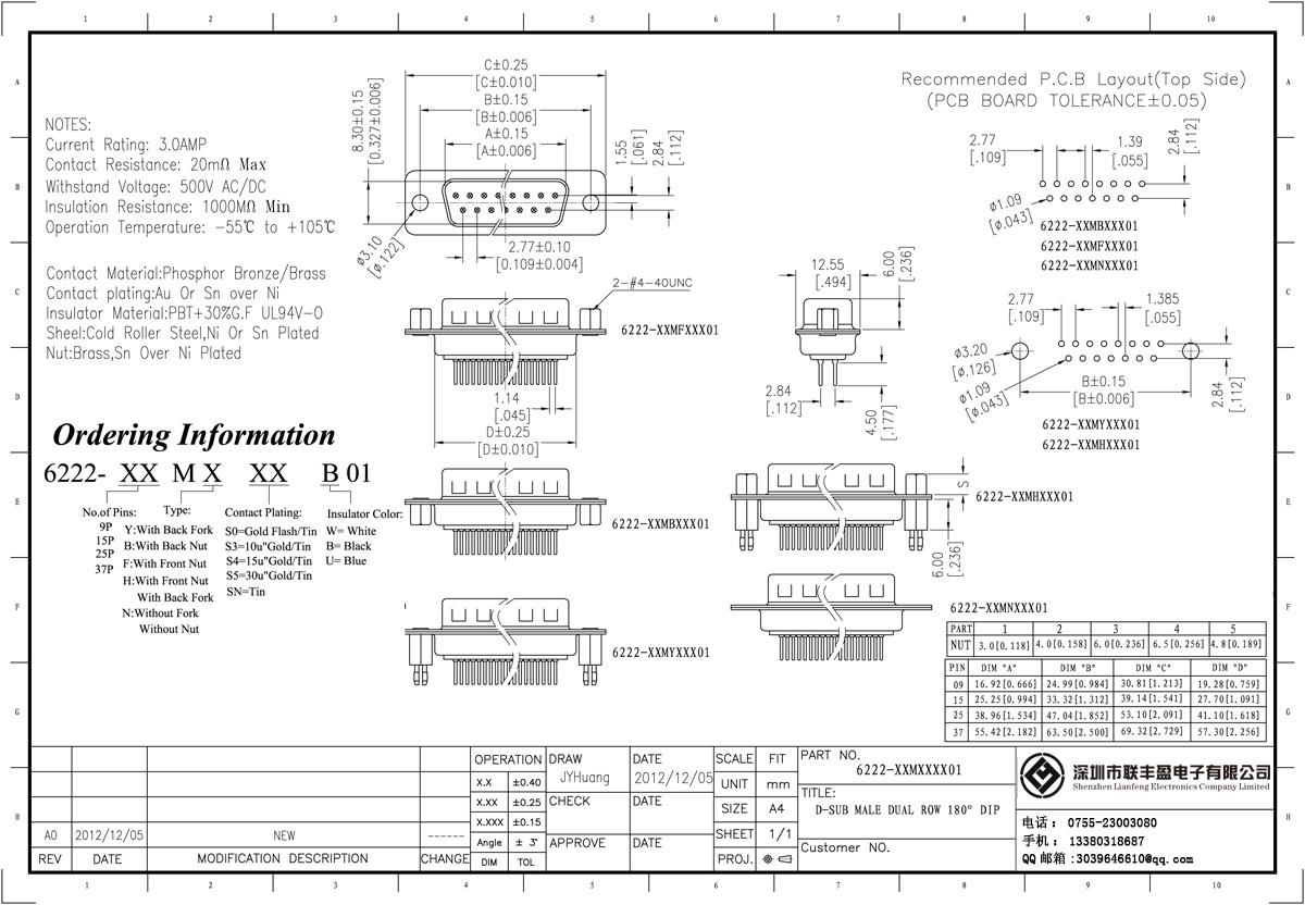 技術參數(shù):額定電流:3.0amp電流電阻:25mΩ最大絕緣電阻:1000mΩ min 承受電壓:AC 500V /分鐘工作溫度:55﹣℃+ 105℃接觸材料:黃銅觸點電鍍金或錫鎳絕緣體材質(zhì):聚酯(UL94V-0)標準:PBT的+ 30%廣發(fā)殼:冷軋輥鋼、鍍鎳黃銅、錫在螺母:鍍鎳
