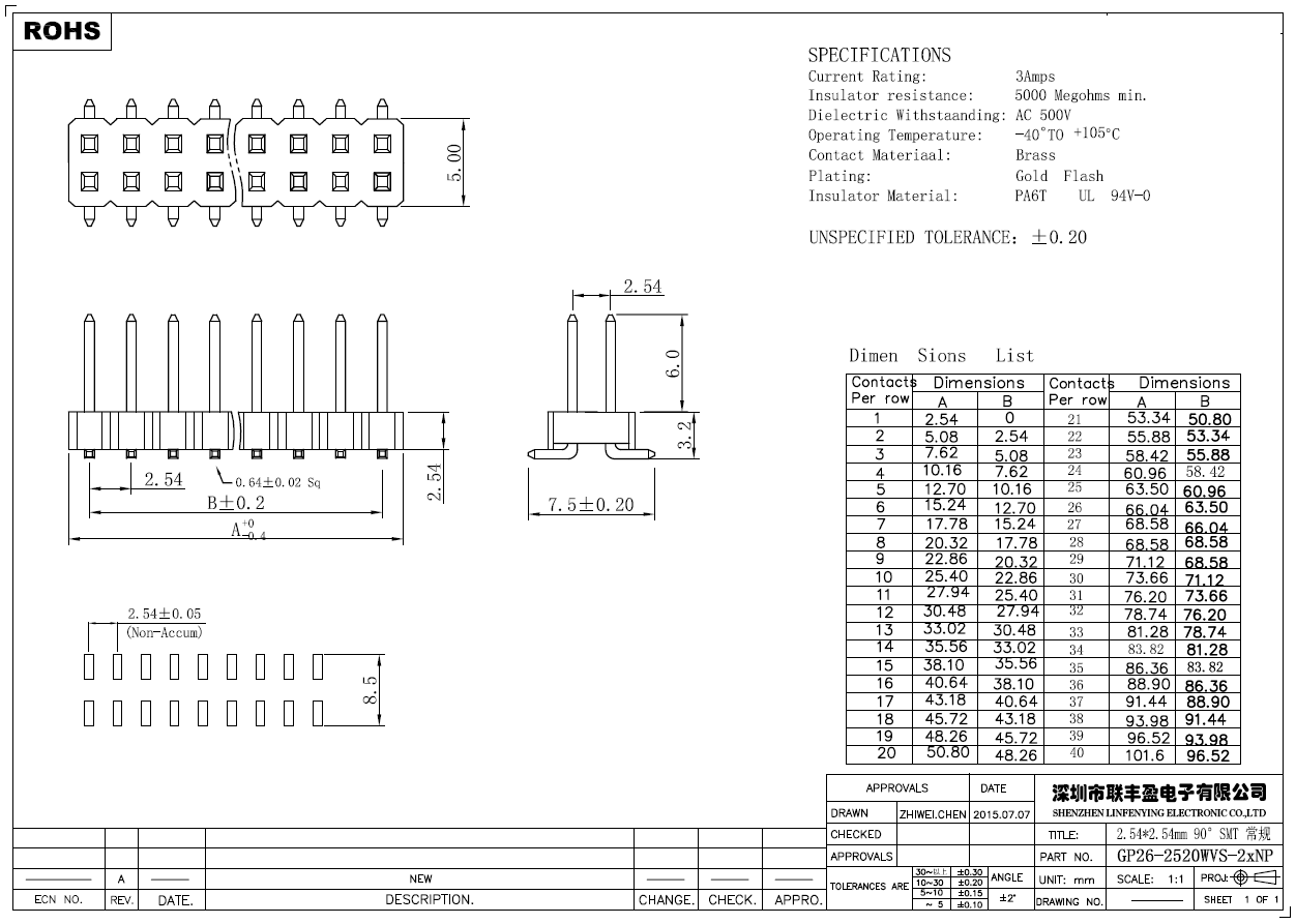 產品簡介品名:排針規格:貼片/立式180°間距:2.54mmPIN數:2-40PIN備注:排針系列