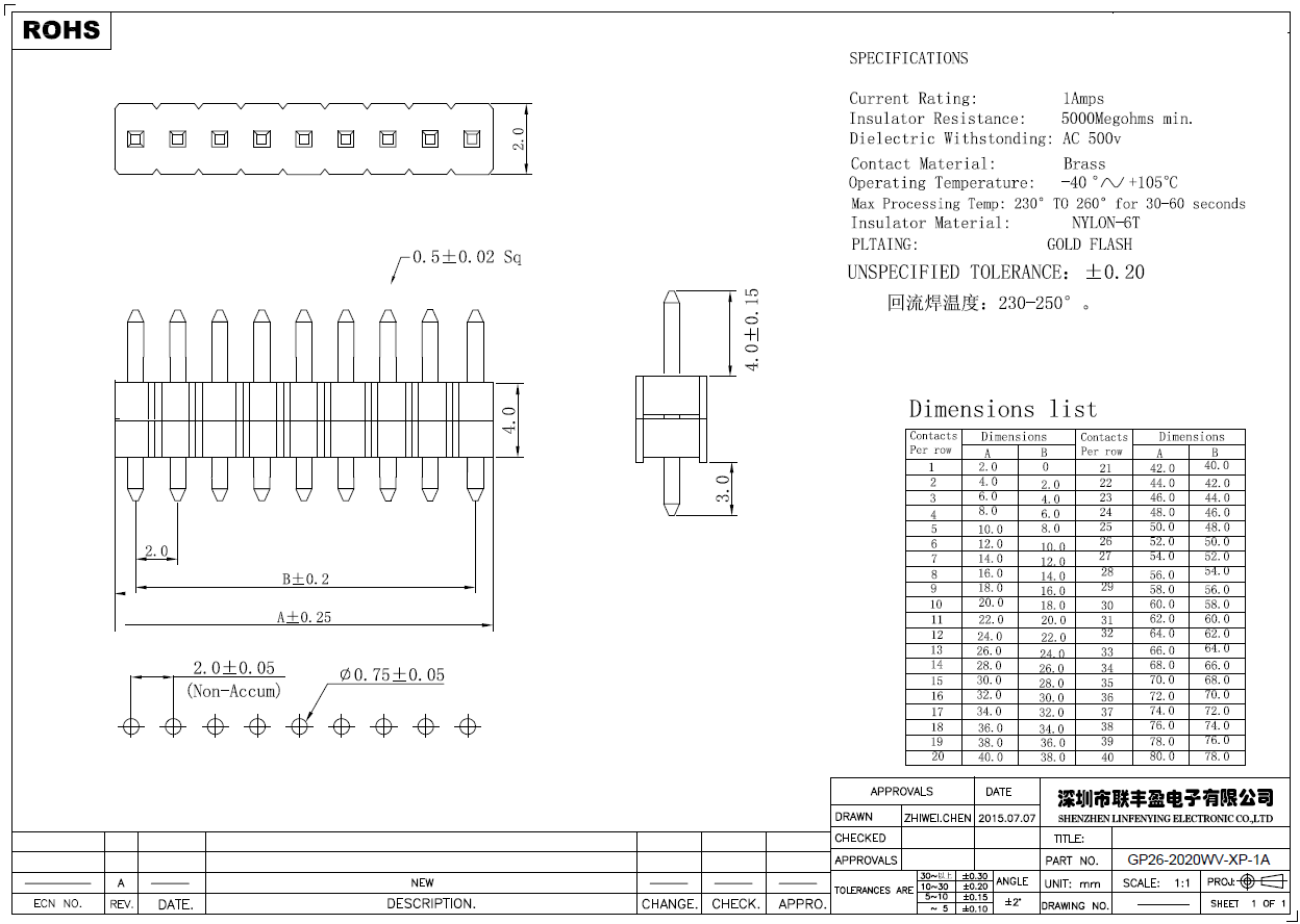 產品簡介品名:排針規格:插件/直式180°間距:2.00mmPIN數:1-40PIN備注:排針系列