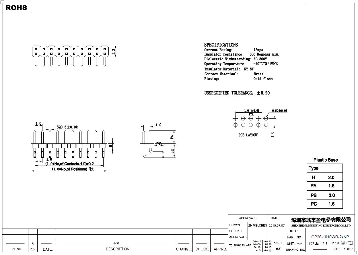 產品簡介品名:排針規格:插件/臥式90°間距:1.00mmPIN數:2-40PIN備注:排針系列