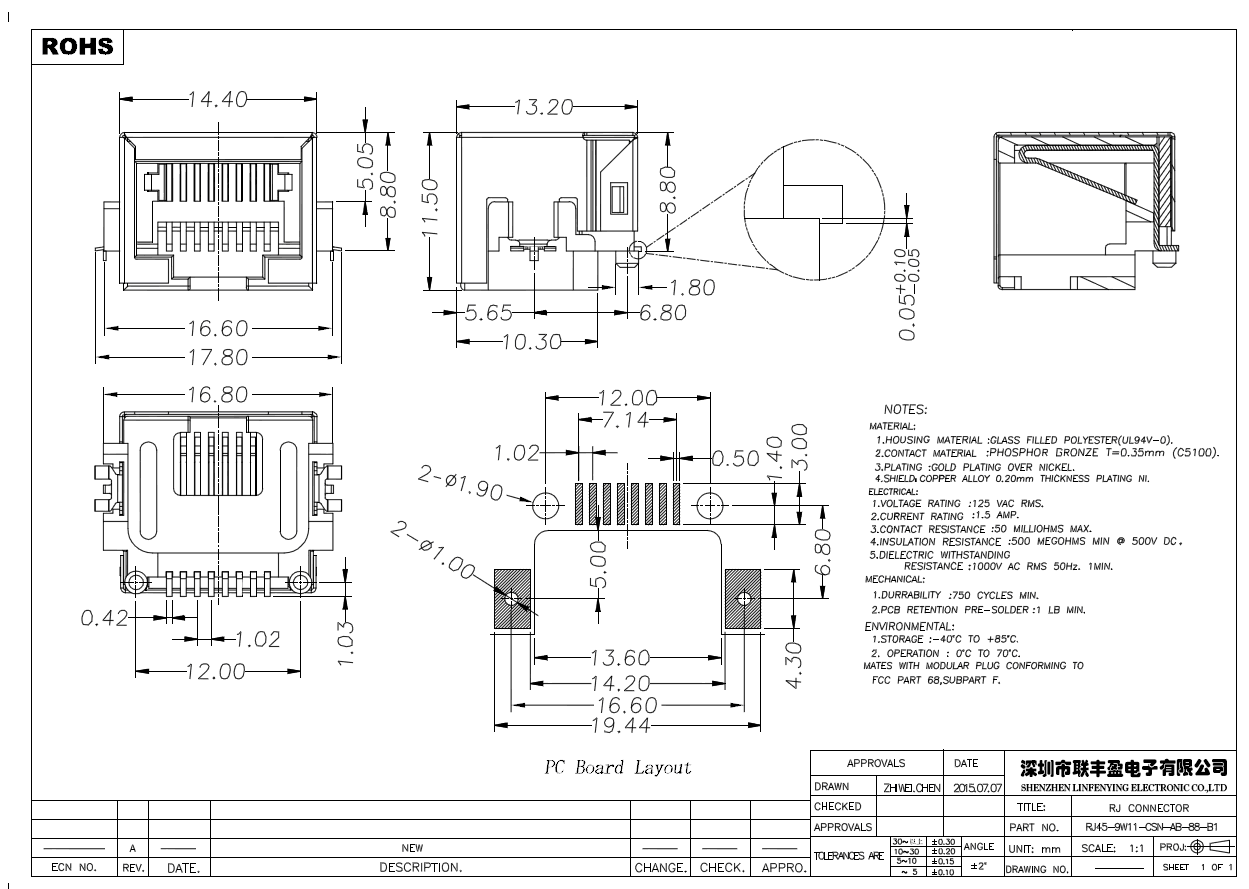 RJ45/RJ11 網絡連接器系列產品技術參數