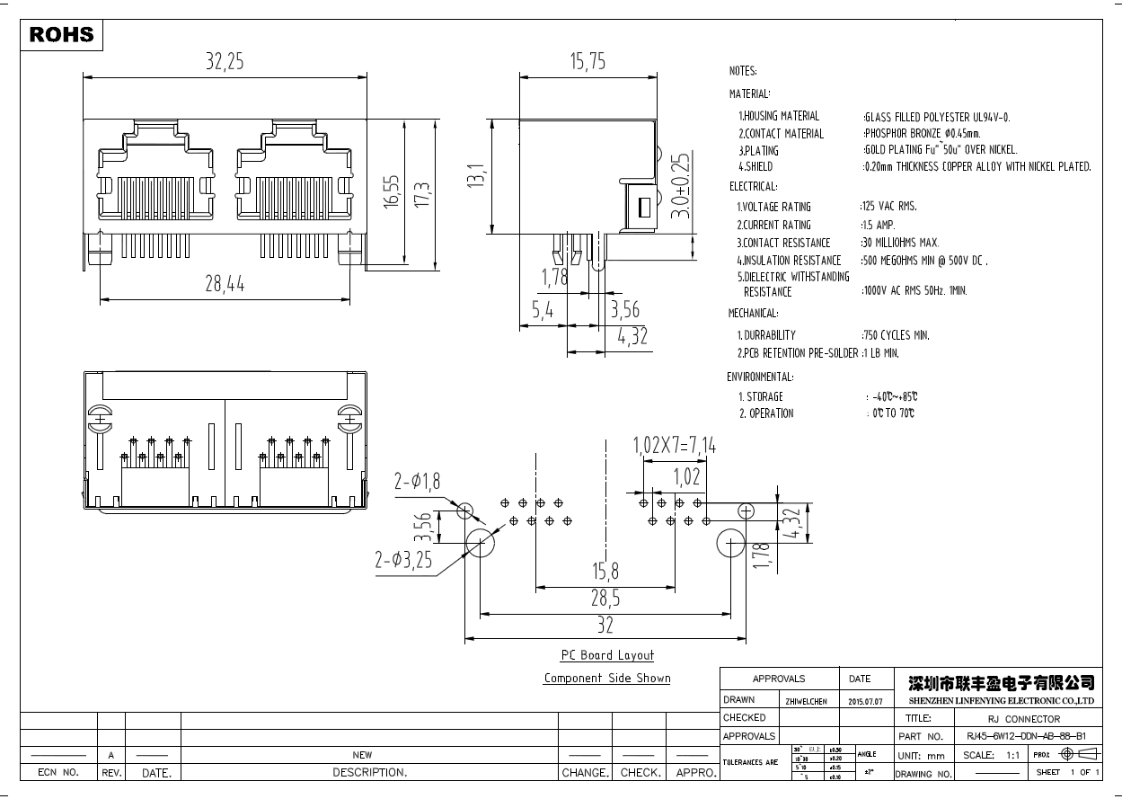 RJ45/RJ11 網絡連接器系列產品技術參數
