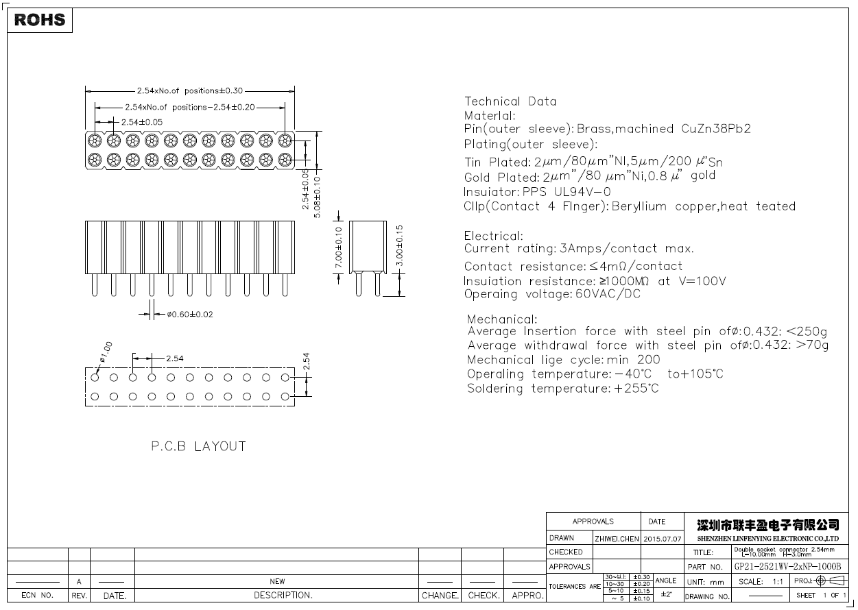 產品簡介品名:排母規格:插件/直式180°間距:2.54mmPIN數:2-40PIN備注:圓孔排母系列