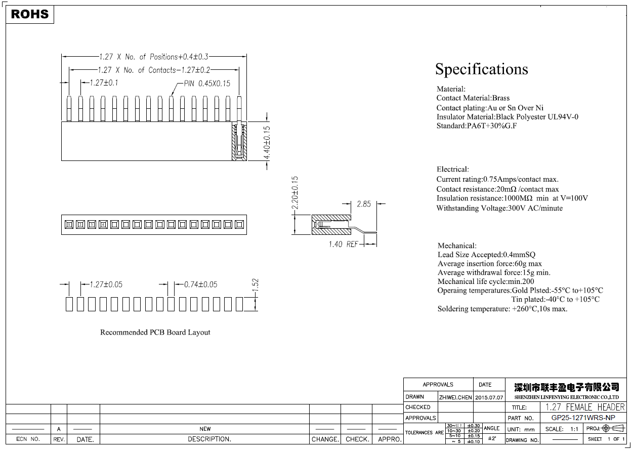 產品簡介品名:排母規格:貼片/臥式90°間距:1.27mmPIN數:2-40PIN備注:排母系列